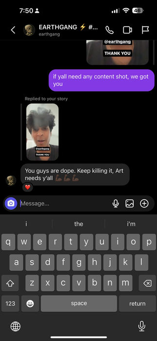 Social videos for Stolen Girlfriends Club that got posted by Earthgang on their Instgram story.